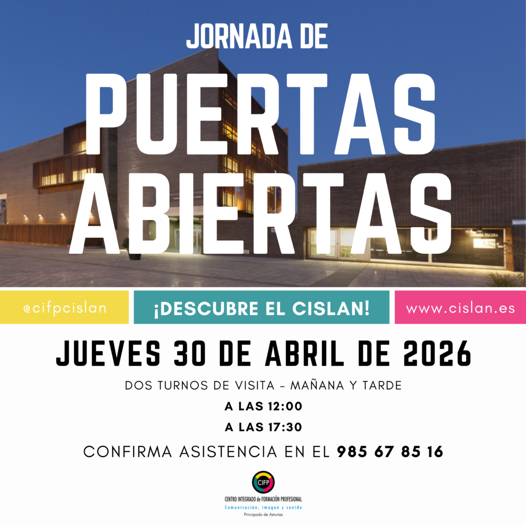 La actividad está orientad al público en general (alumnado, familia, docentes, ciudadanía, empresas…) y durará alrededor de una hora, durante la que se mostrarán las instalaciones del centro, se presentará su oferta educativa y se mostrarán los equipamientos de espacios especializados como el plató o el estudio de grabación.